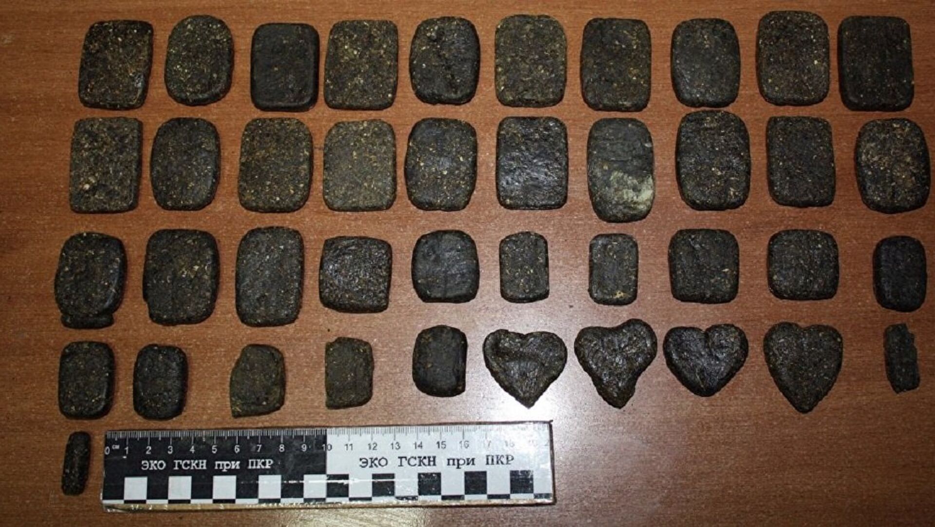 39-летний мужчина задержан в среду в Шопокове Чуйской области. В ходе личного досмотра в левом кармане его жилетки обнаружены наркотики в форме спрессованных брикетов в количестве 41 штуки. Среди них были брикеты и в форме сердечек.