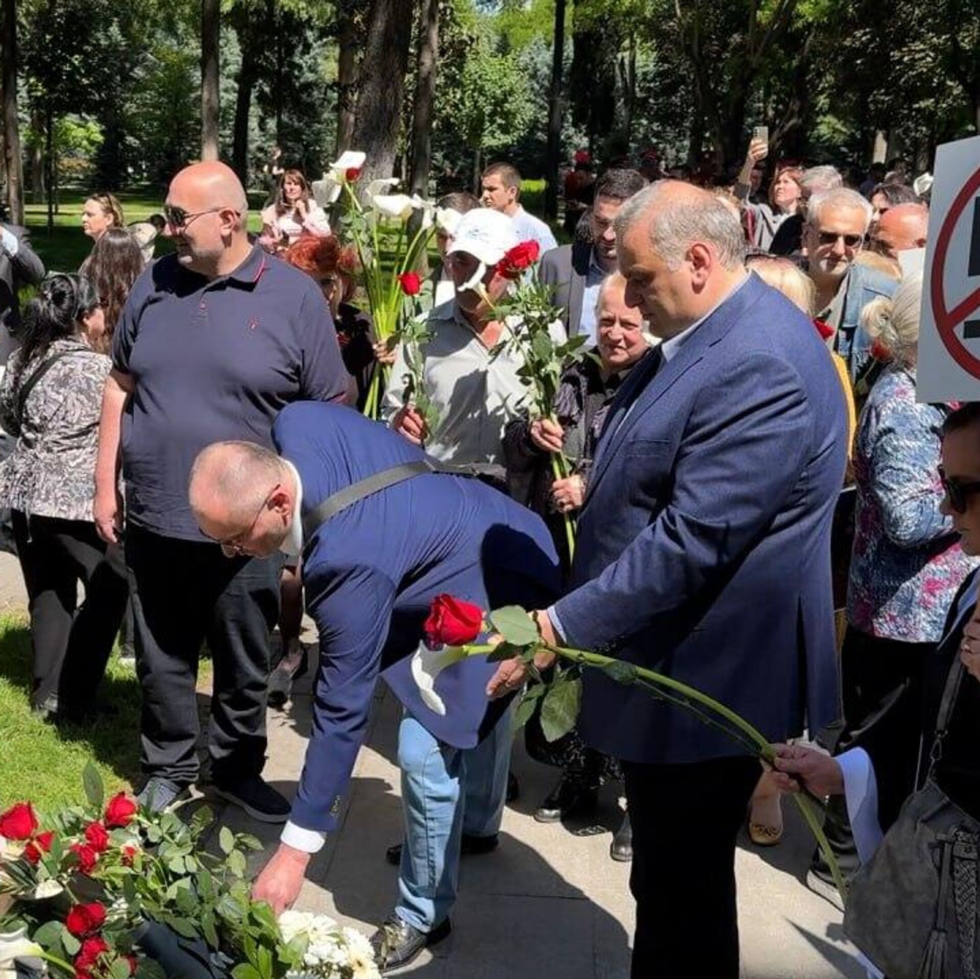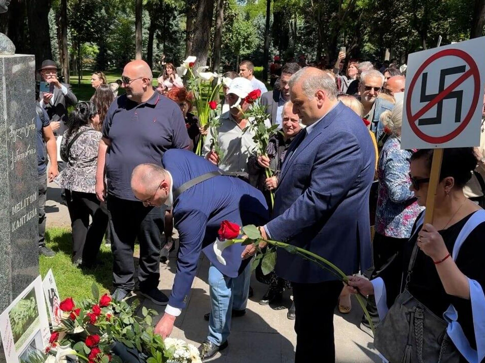 Рцхиладзе возложил цветы к памятнику Мелитону Кантария и приложил к бюсту фотографию, на которой Кантария изображен вместе с Михаилом Егоровым.