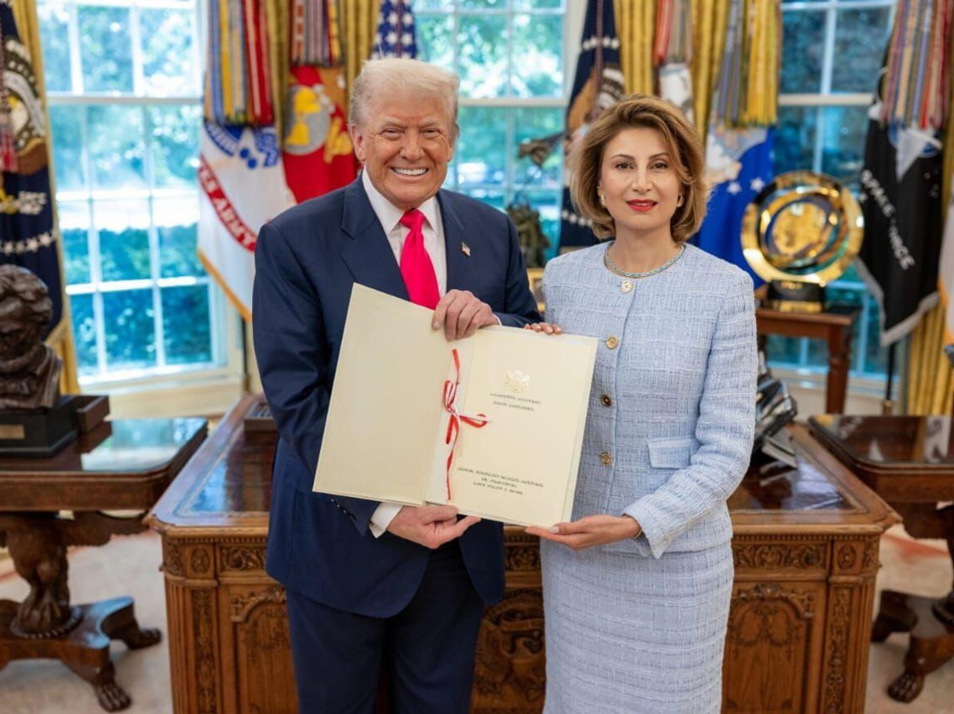 ТБИЛИСИ, 26 июл — Sputnik. Посол Грузии в США Тамар Талиашвили вручила президенту США Дональду Трампу верительные грамоты и послание от грузинского правительства, сообщает пресс-служба МИД.