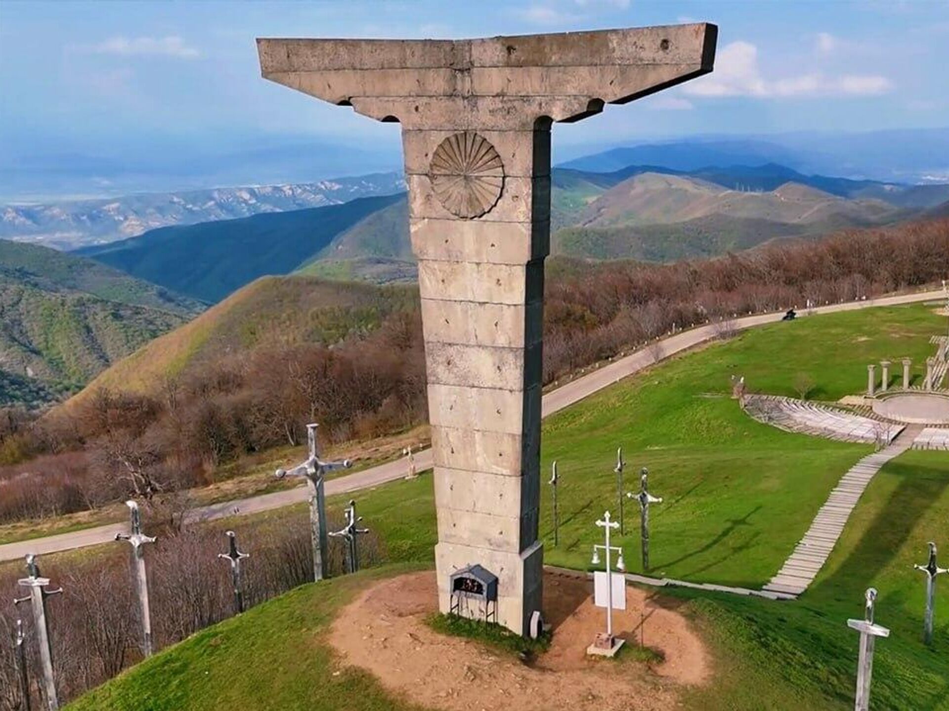 На месте, где произошла много веков назад Дидгорская битва, ныне воздвигнут необычный мемориальный комплекс с огромными мечами. Автором монументальной работы на горе Дидгори является скульптор Мераб Бердзенишвили.