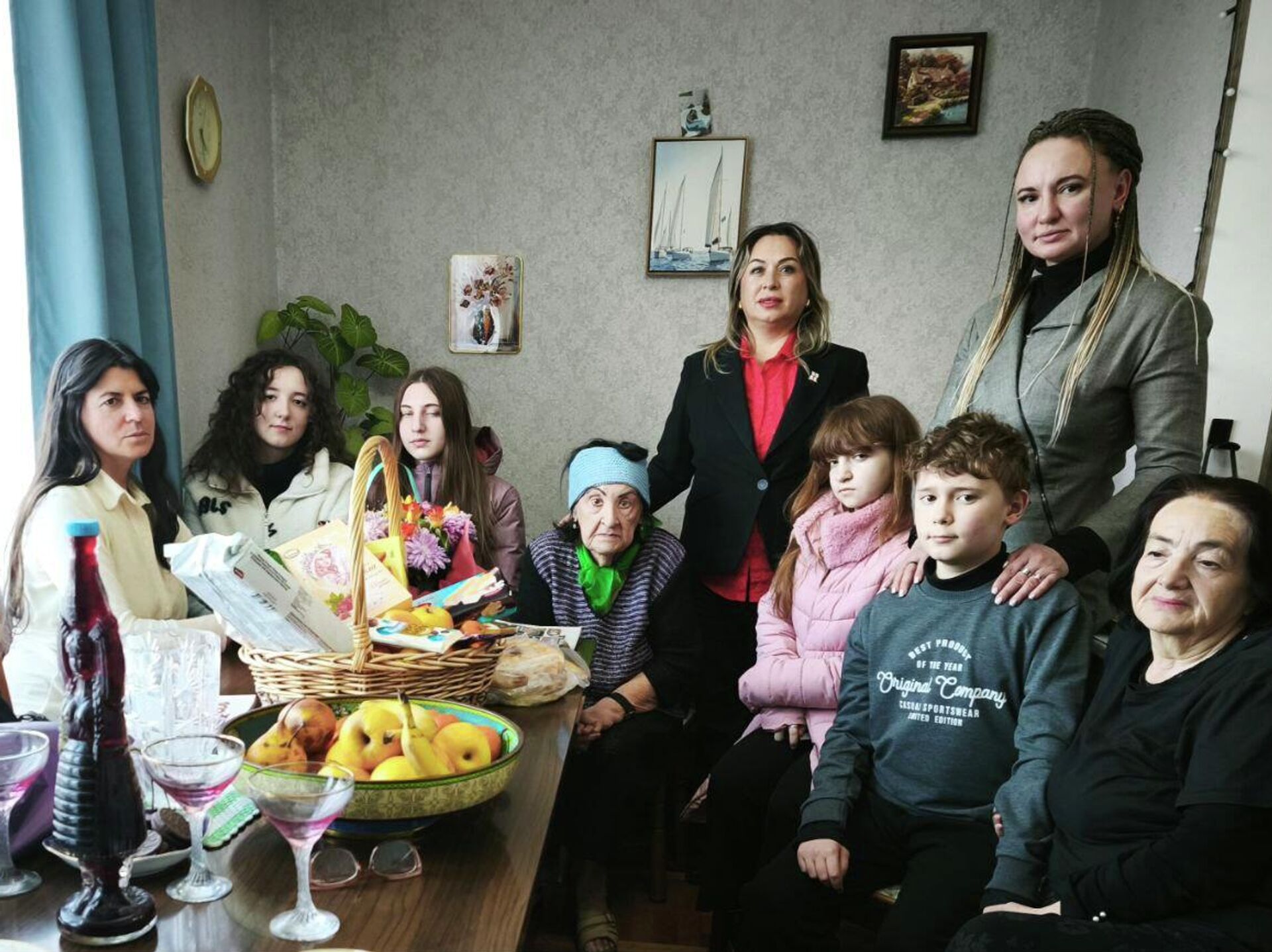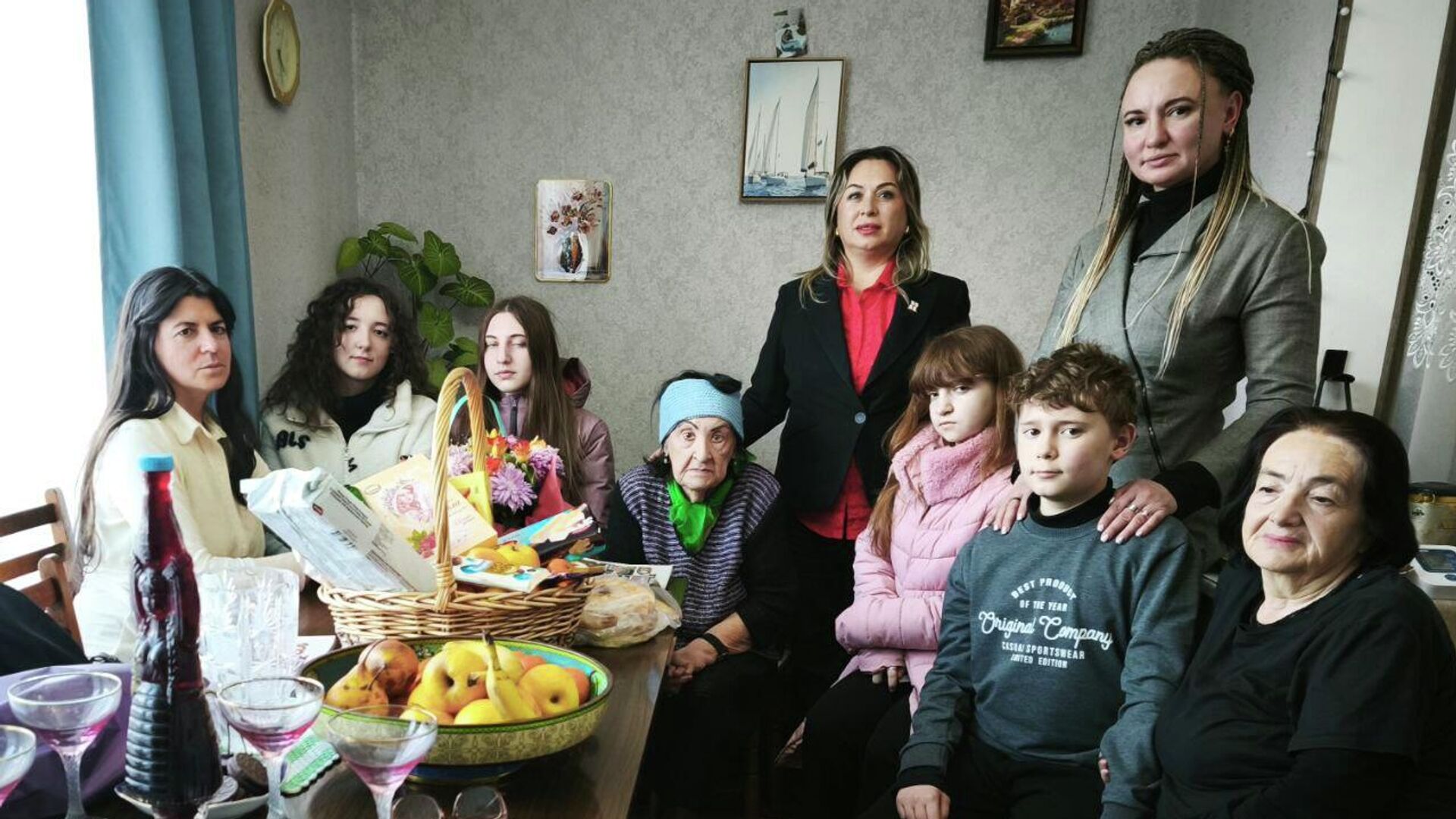 Гости навестили ветерана Великой Отечественной войны в Тбилиси, поблагодарили ее за стойкость и мужество, передали корзину гостинцев и букет любимых цветов. По словам Аллы Николаевны, визит стал для нее неожиданным.