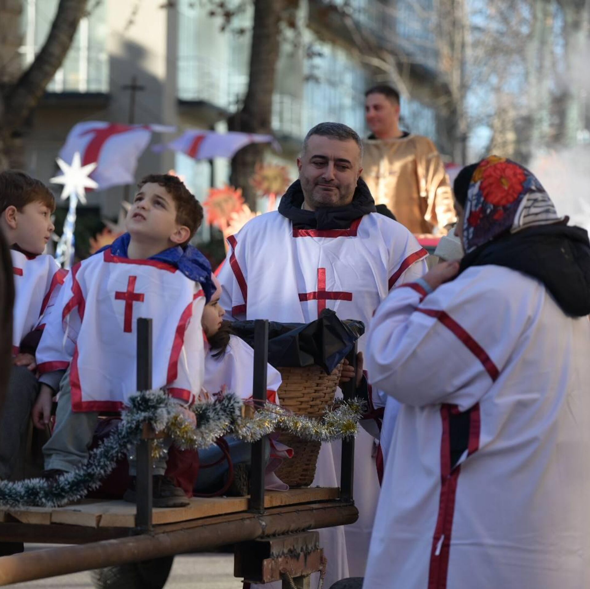 По обычаю, участники проходили через центр города – от площади Первой Республики до Кафедрального собора Святой Троицы Самеба. По пути жители встречали шествие, передавая подарки и угощения, которые затем будут направлены нуждающимся.