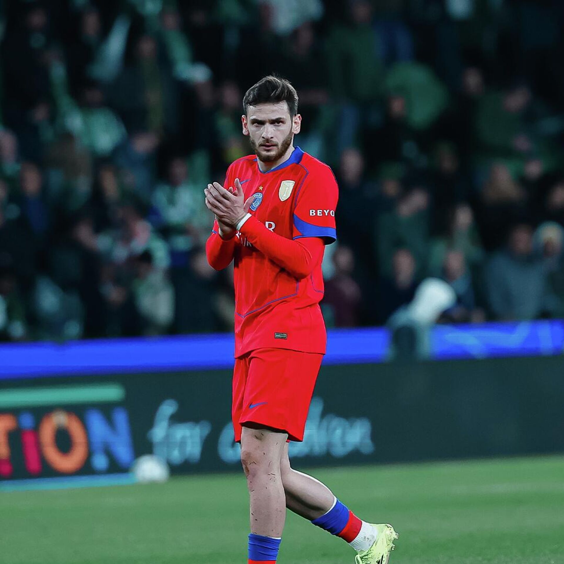 Кварацхелия получил желтую карточку в конце матча, а победу "Спортингу" принес гол Луиса Суареса на 89 минуте – 2:1.