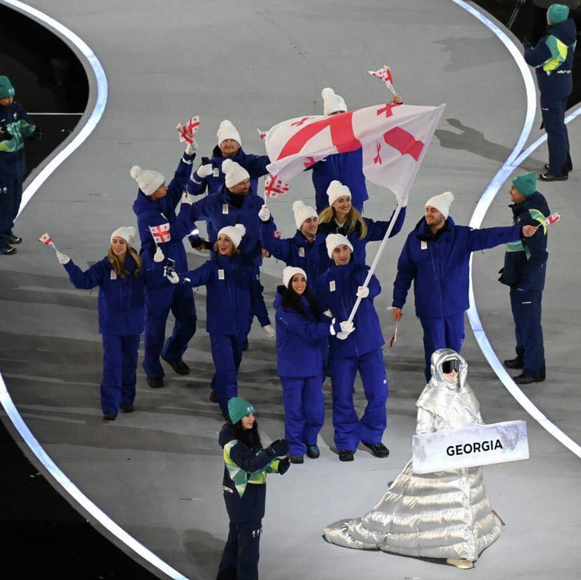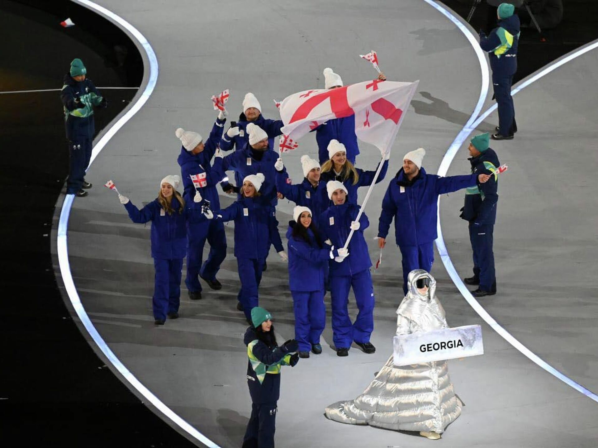 Грузинскую делегацию на Играх возглавляет президент Олимпийского комитета, олимпийский чемпион Лери Хабелов, а главой миссии в олимпийской деревне стала президент федерации фигурного катания, член исполнительного комитета Олимпийских игр Мариам Гиоргобиани.
