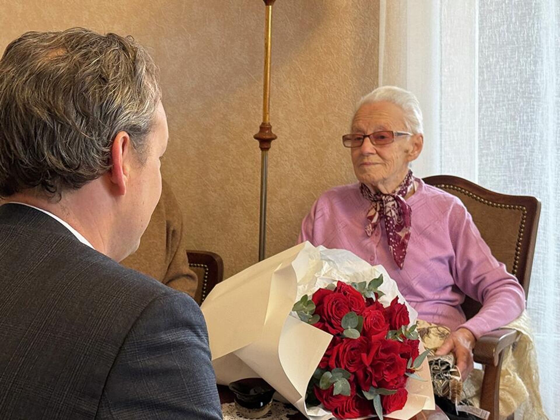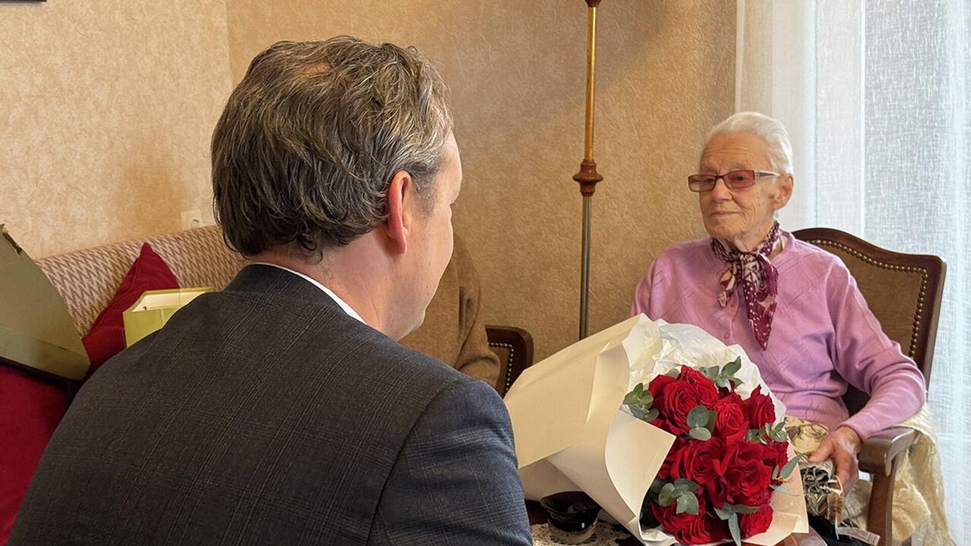 17:55 28.02.2026 (обновлено: 18:17 28.02.2026) 28 февраля свой вековой юбилей отмечает ветеран Великой Отечественной войны, жительница блокадного Ленинграда Лилия Леонидовна Зерекидзе. Поздравление от президента Российской Федерации вручил юбилярше глава Секции интересов России в Грузии Дмитрий Олисов.