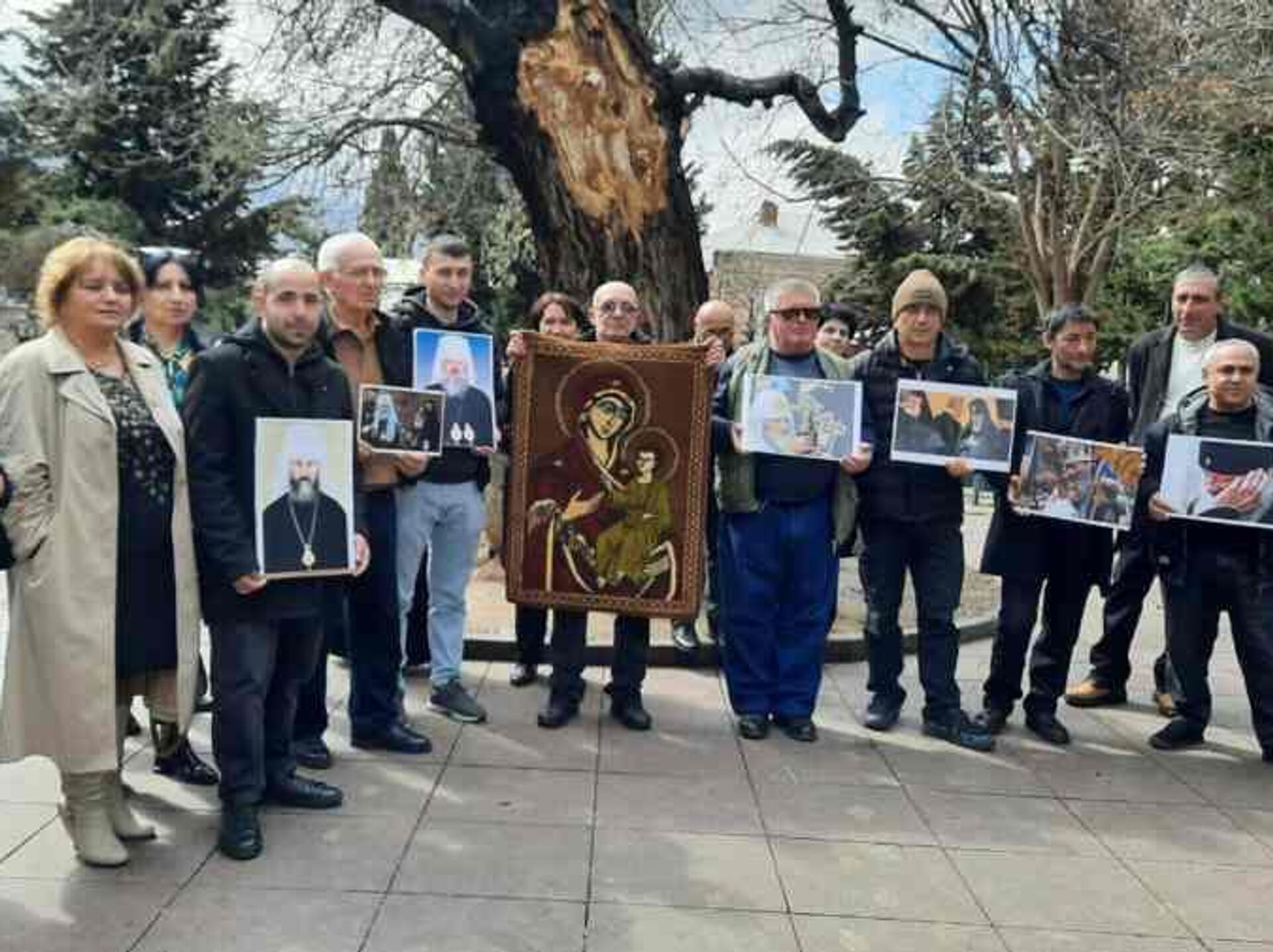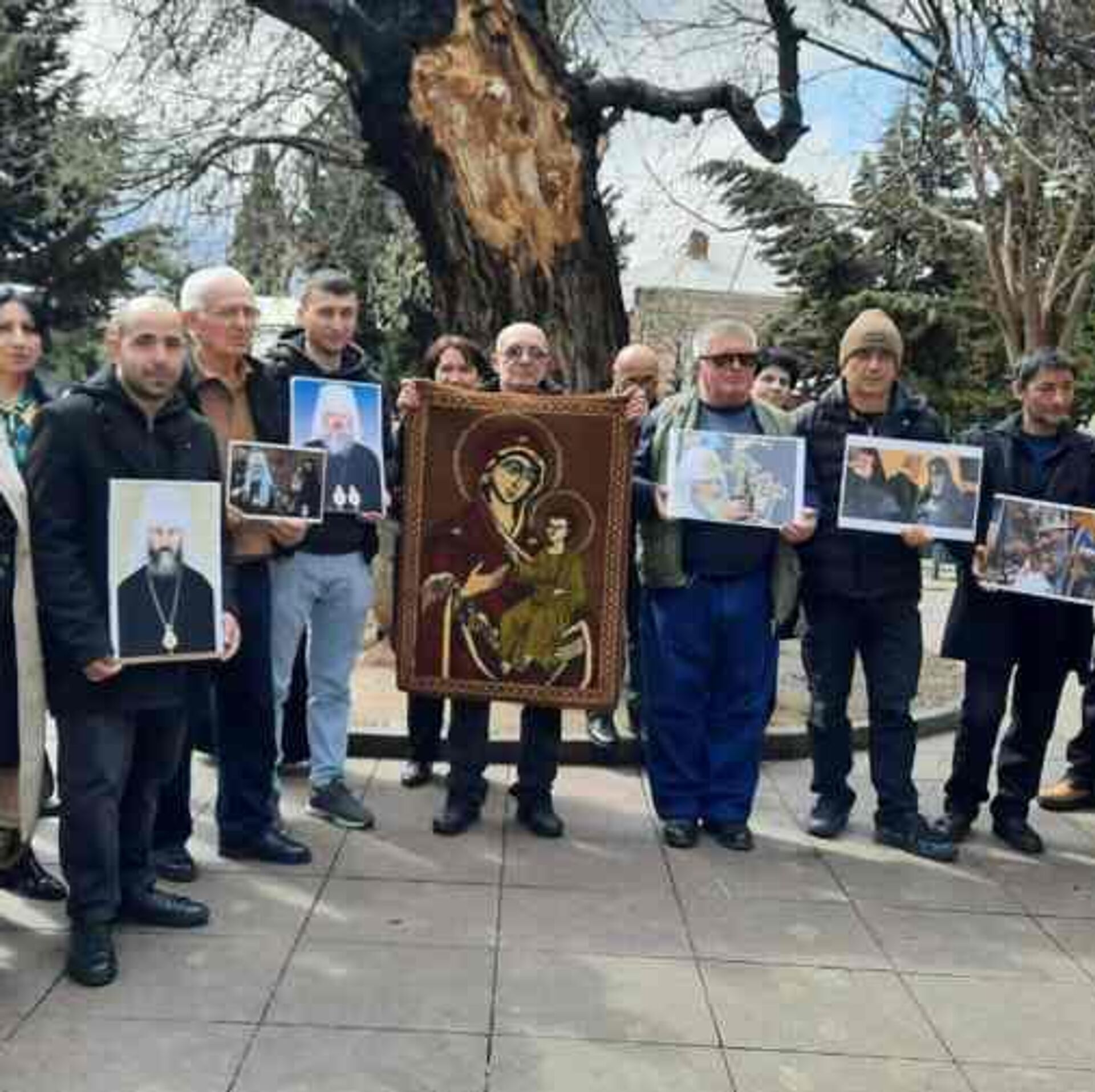 Сторонники политического движения "Мдзлевели" ("Победоносец") провели молчаливую акцию под открытым небом. Участники держали плакаты с изображениями патриарха Илии II, патриарха Кирилла, а также других религиозных и общественных фигур. Присутствовали и критические лозунги в адрес патриарха Варфоломея.