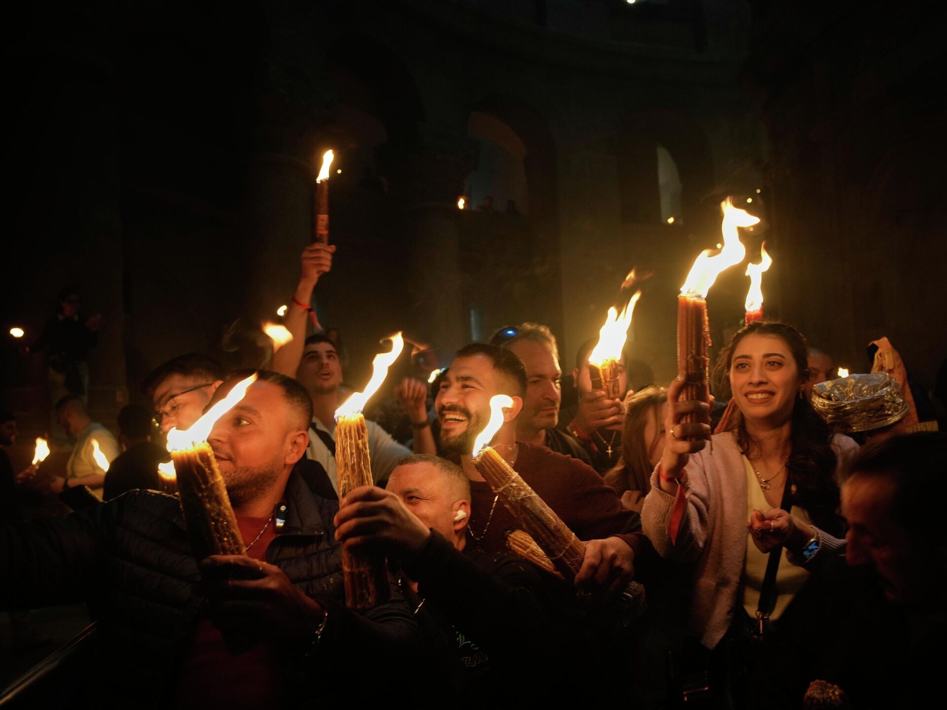 Схождение Благодатного огня в храме Гроба Господня в Иерусалиме - фото