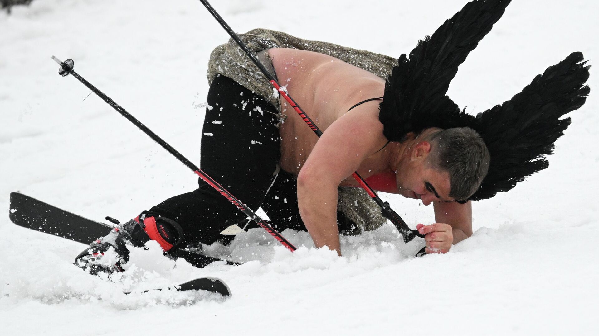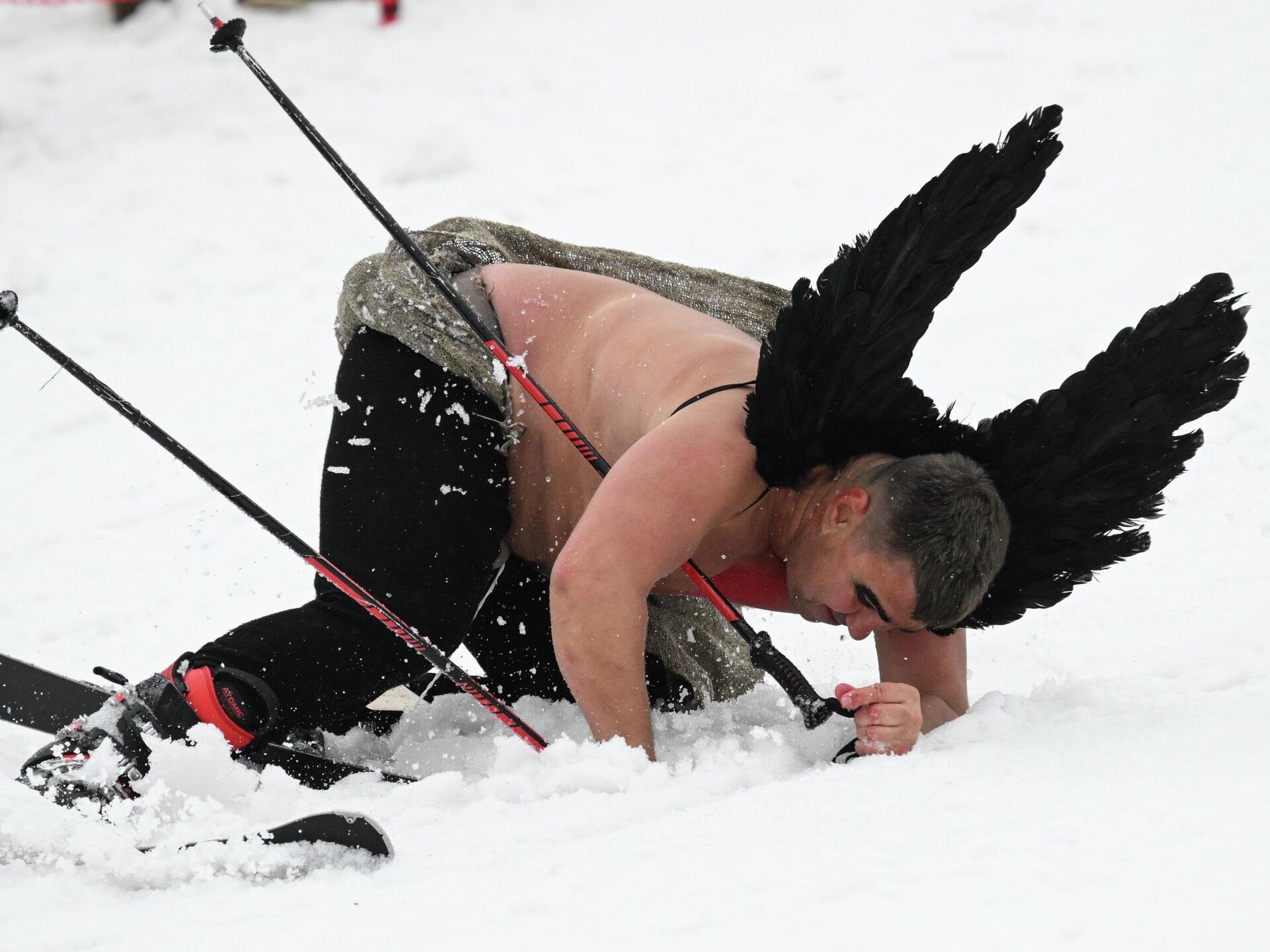 © photo: Sputnik / Alexandr Kryazhev / Перейти в фотобанк Участник "Карнавального" спуска на склоне горы Зеленая во время фестиваля GrelkaFest в Шерегеше. Участник "Карнавального" спуска на склоне горы Зеленая во время фестиваля GrelkaFest в Шерегеше.